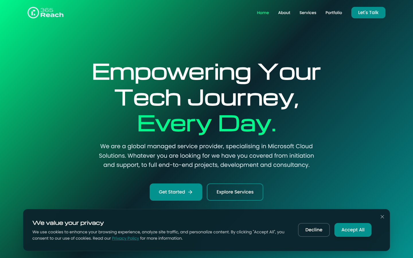 Tech consultancy site with modern gradient design and service showcase.