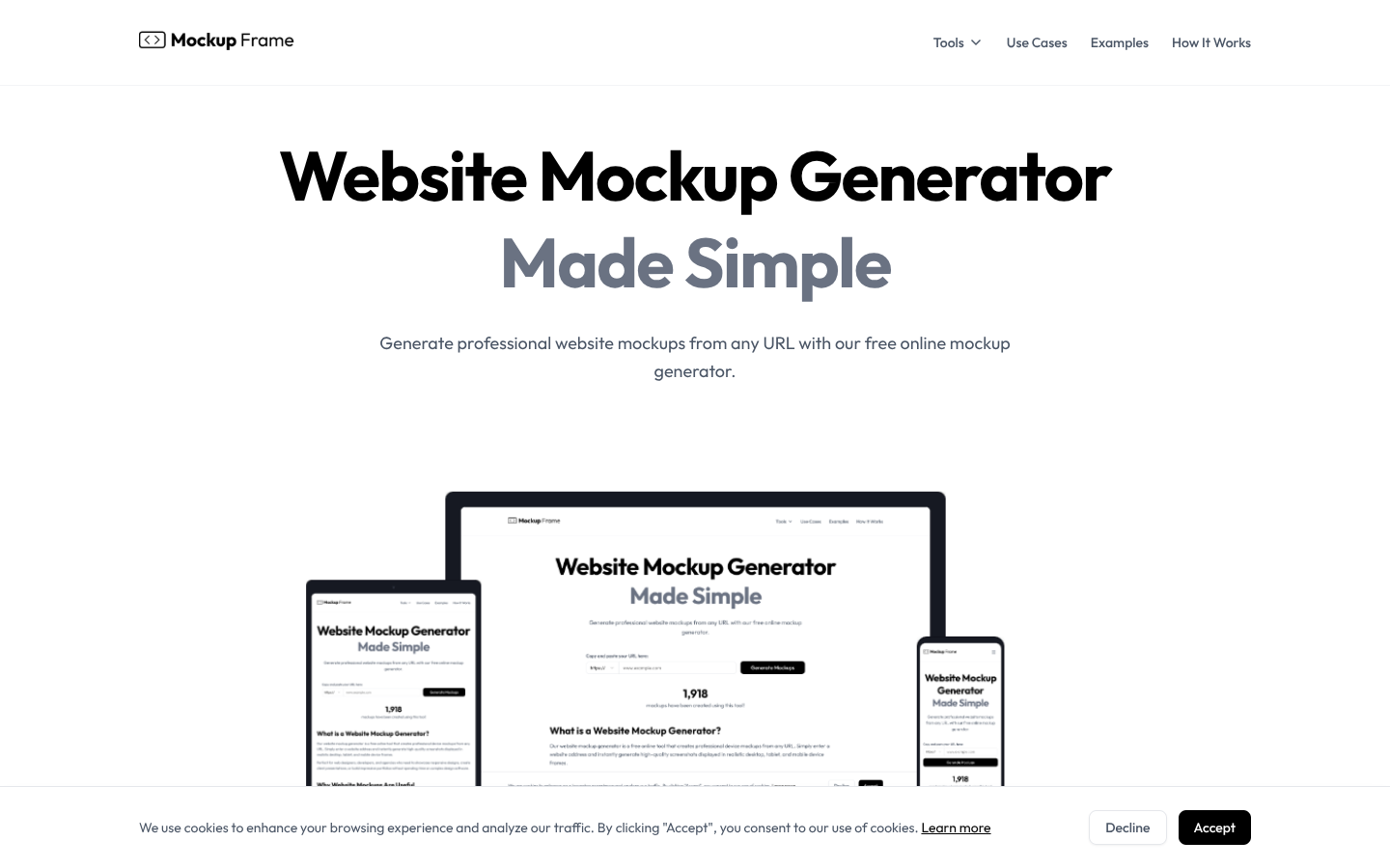 SaaS platform for website mockup generation with multi-device display.